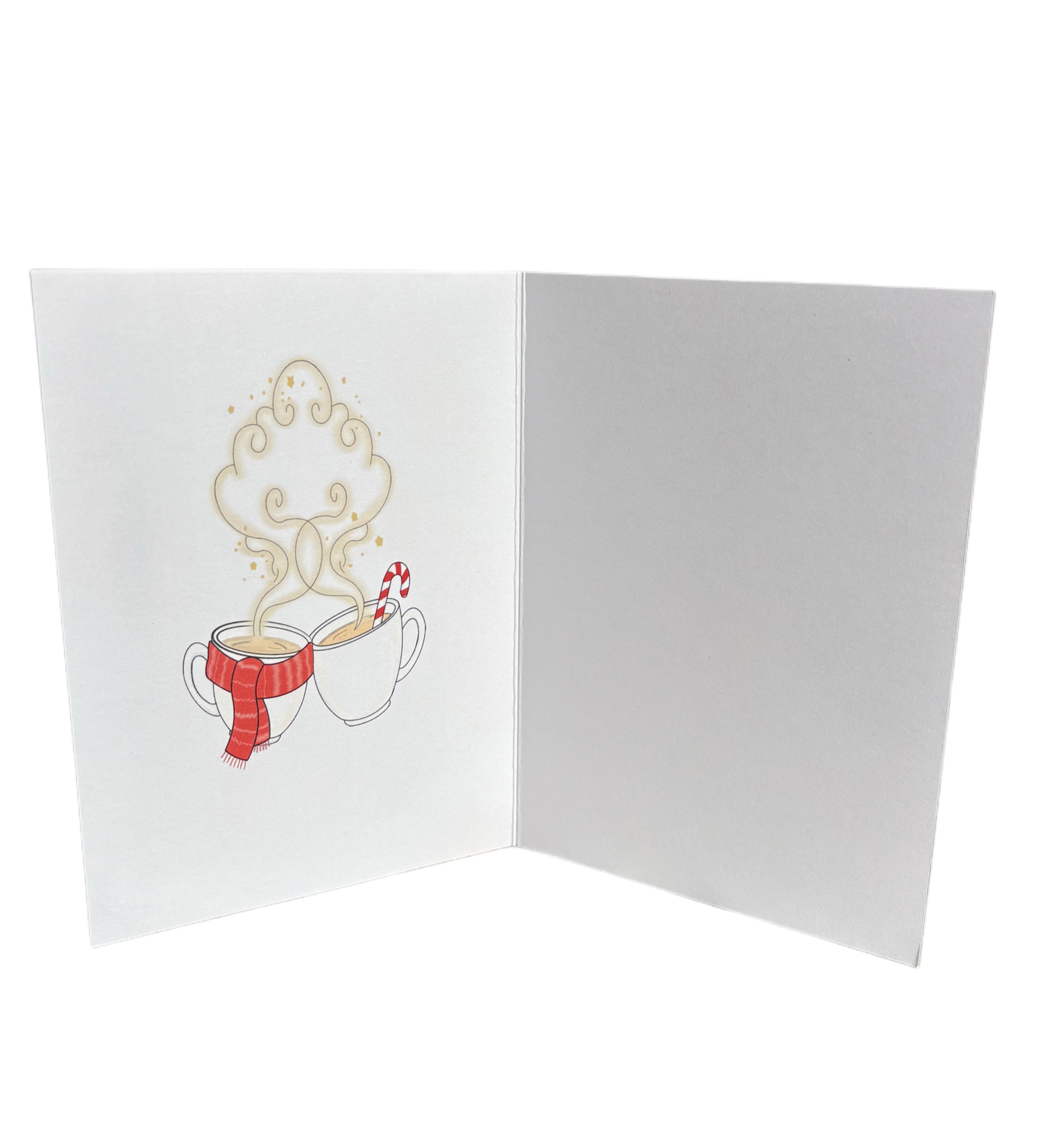 Interno dei biglietti d’auguri invernali con disegno di tazze di cioccolata calda -